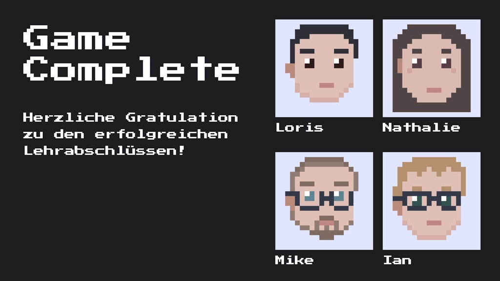 Our apprentices in the 4th year have completed their final qualification procedures, including the IPA. We warmly congratulate Ian, Mike, Nathalie, and Loris on obtaining their Federal VET Diploma (EFZ)!